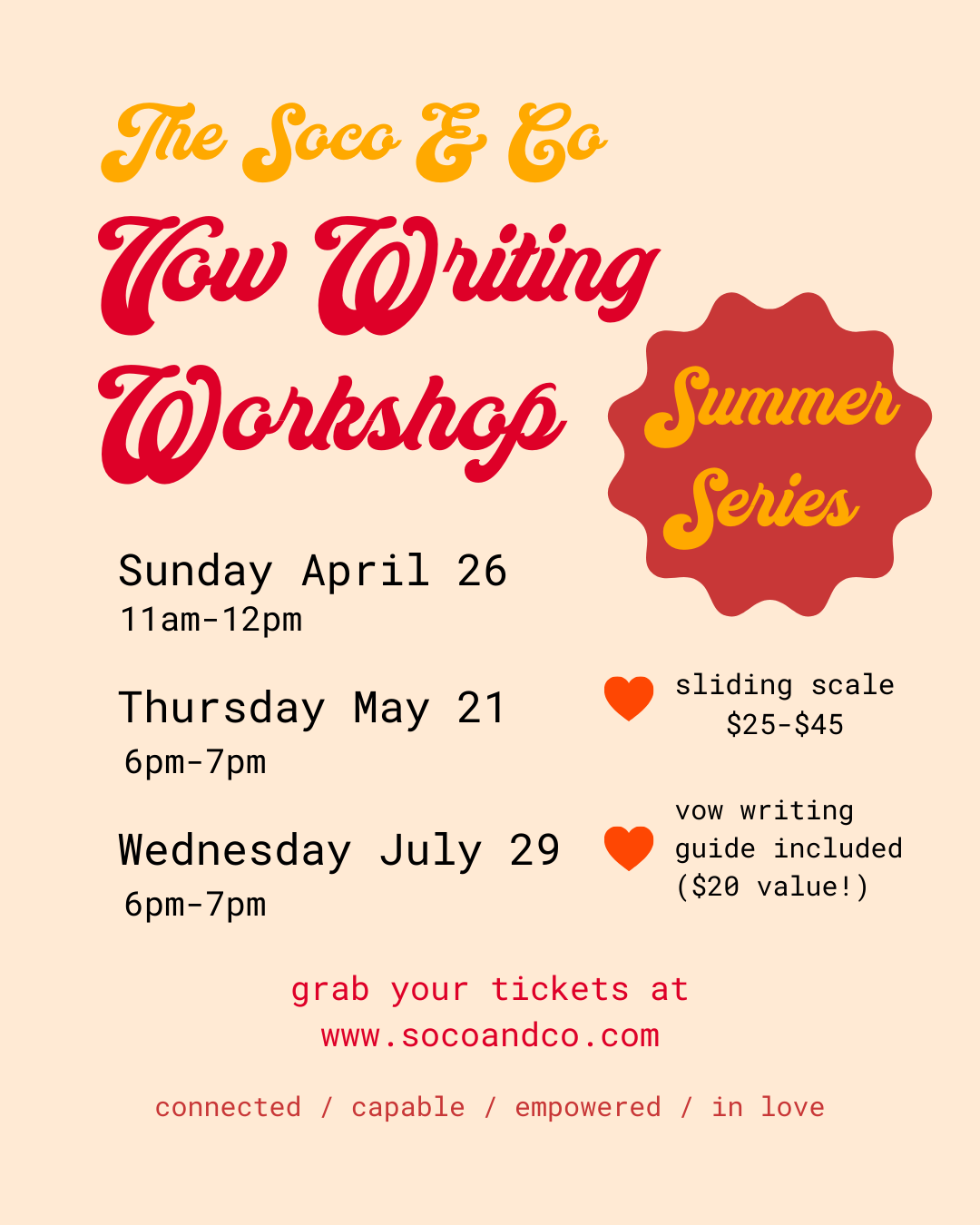 Welcome to Love School! Download your FREE Vow Writing Guide using the button below. Make sure to bring it to class! SHOP NOW